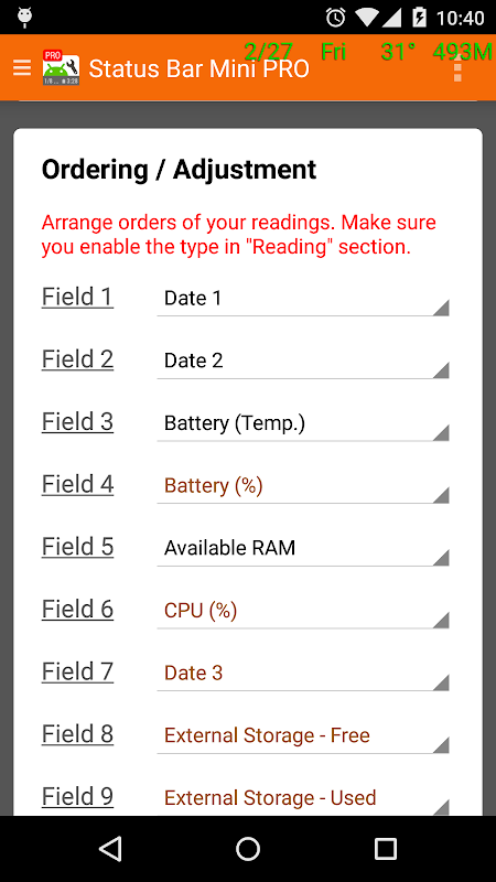 这个应用程序帮助您在屏幕上添加有意义的资讯。您可以添加不同的格式日期、电池用量、温度、可用内存(RAM)等,使您可以随时快速得知最新资讯。您还可以更改字体大小、颜色、顺序、位置、透明度和布局。