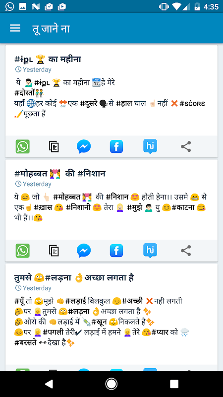 Tu Jane na- App contains different categories status collection in English , Hindi.