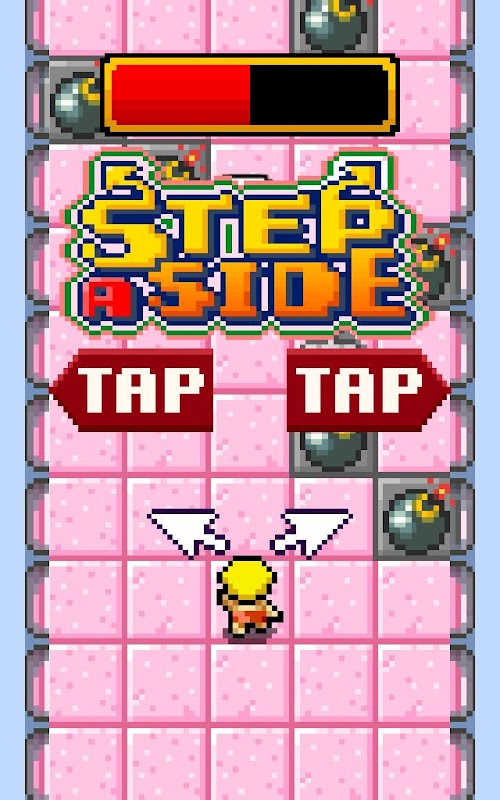 Run zig zag !! "Step Aside" is a very simple classical game. Following the diagonal lines step by step as you can. Once you hesitate, you will lost your character. Don't freak out. You can just play again without a coin