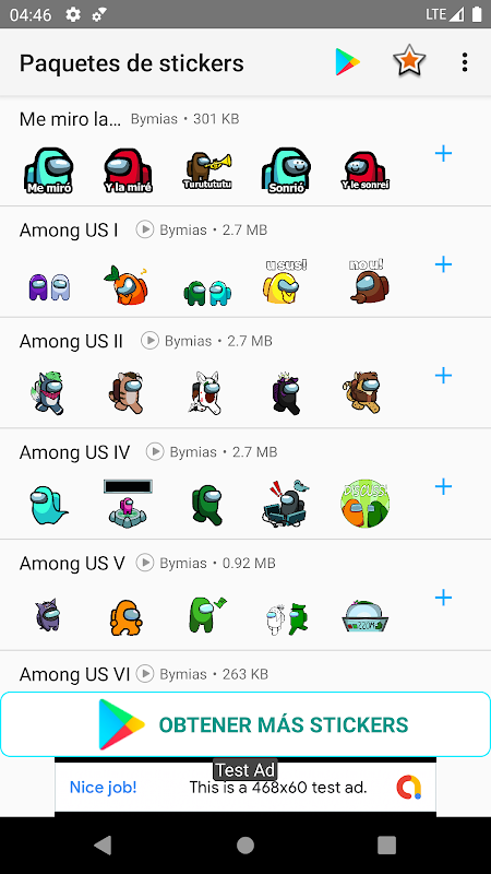 Esta aplicación trae colecciones de stickers de Among Us con movimiento para agregar y usar en WhatsApp