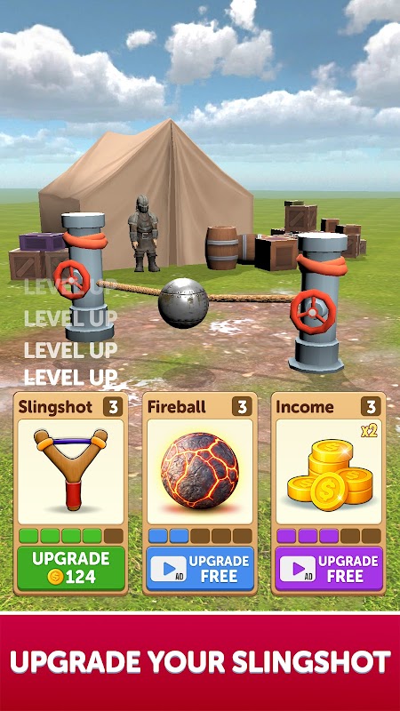 随着游戏的进行,你可以升级弹弓,并将弹丸从普通的石块进化成更强大的形态,例如铁球、爆炸炸弹和威力强大的火球。每次进化都会提升你的破坏力,助你征服更坚固的城堡。