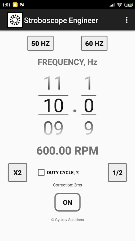 - 您可以选择通过从菜单 - 校准开始校准来校准应用程序。当频率改变时最好进行校准。您还可以在“设置”中手动设置校正时间。