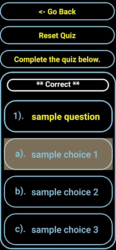 使用此应用程序创建多项选择测验。该应用程序的某些部分利用文本转语音功能,通过按下问题文本来向用户朗读问题,当问题得到回答时,应用程序会提示问题是否正确。应用程序的主屏幕中提供了关闭声音的选项。