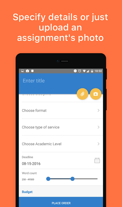 Placing an order is 100% free. The only information we need from you is the type and the title of your assignment. No credit card required.
