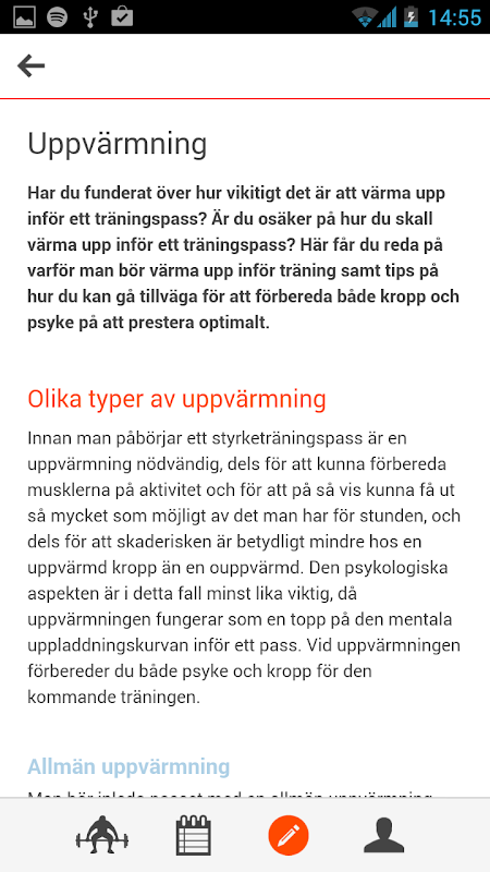 Till sist, som komplement till övningar och pass, finns också en träningsguide med artiklar om hälsa, kost och träning.