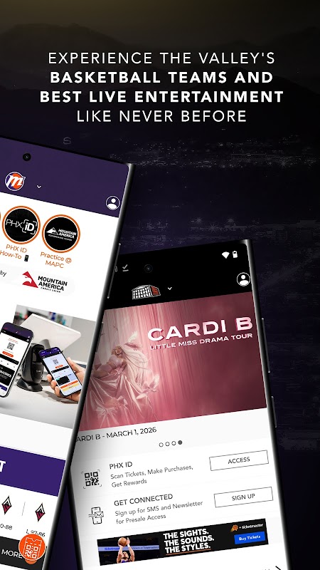 获取菲尼克斯太阳队和菲尼克斯水星队的独家篮球内容、球员和球队新闻以及实时数据。通过关联您的Ticketmaster账户,即可在应用程序内快速创建您的PHX ID,轻松扫描门票、购买餐饮和周边商品,并在同一平台赢取奖励。开启通知,即可接收重要的比赛公告、特别内容和周边商品信息。