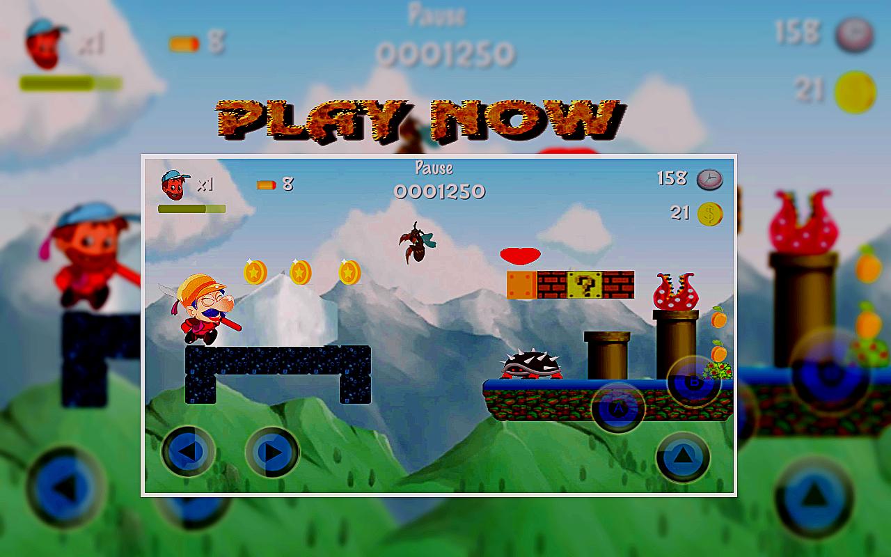 Super Adventure of Bino is a classic adventure carrying an exploration into your childhood. Retro game with jumping gameplay, running and destroying enemies on this stunning island. Destroy the bricks and get a bonus tab in every hidden item. The boys decide to hunt down the wicked magicians and find the treasure through the map on the island. Help the boys through the jungle on the island safely.On a beautiful sunny day Bino and his girlfriend were eating apples together and enjoying life and suddenly an evil monster appeared from the deep jungle out of nowhere. That evil monster captured Bino's girlfriend and ran away into the deep jungle. Bino is on an adventure to rescue his girlfriend by defeating the monster and teach him a lesson. The Adventure is a game of everyone who loves the competition and challenge because it contains many of them, besides the beautiful graphics of the game that gives the perfect joy to play it.