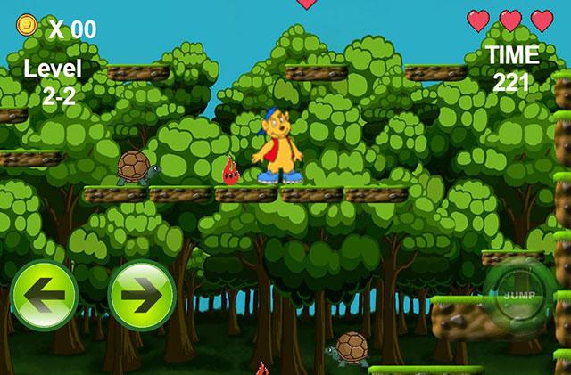 To play you simple touch the buttons to move and jump . You can jump over turtles to kill them and your goal is to guide the bear through to the end of the jungle.