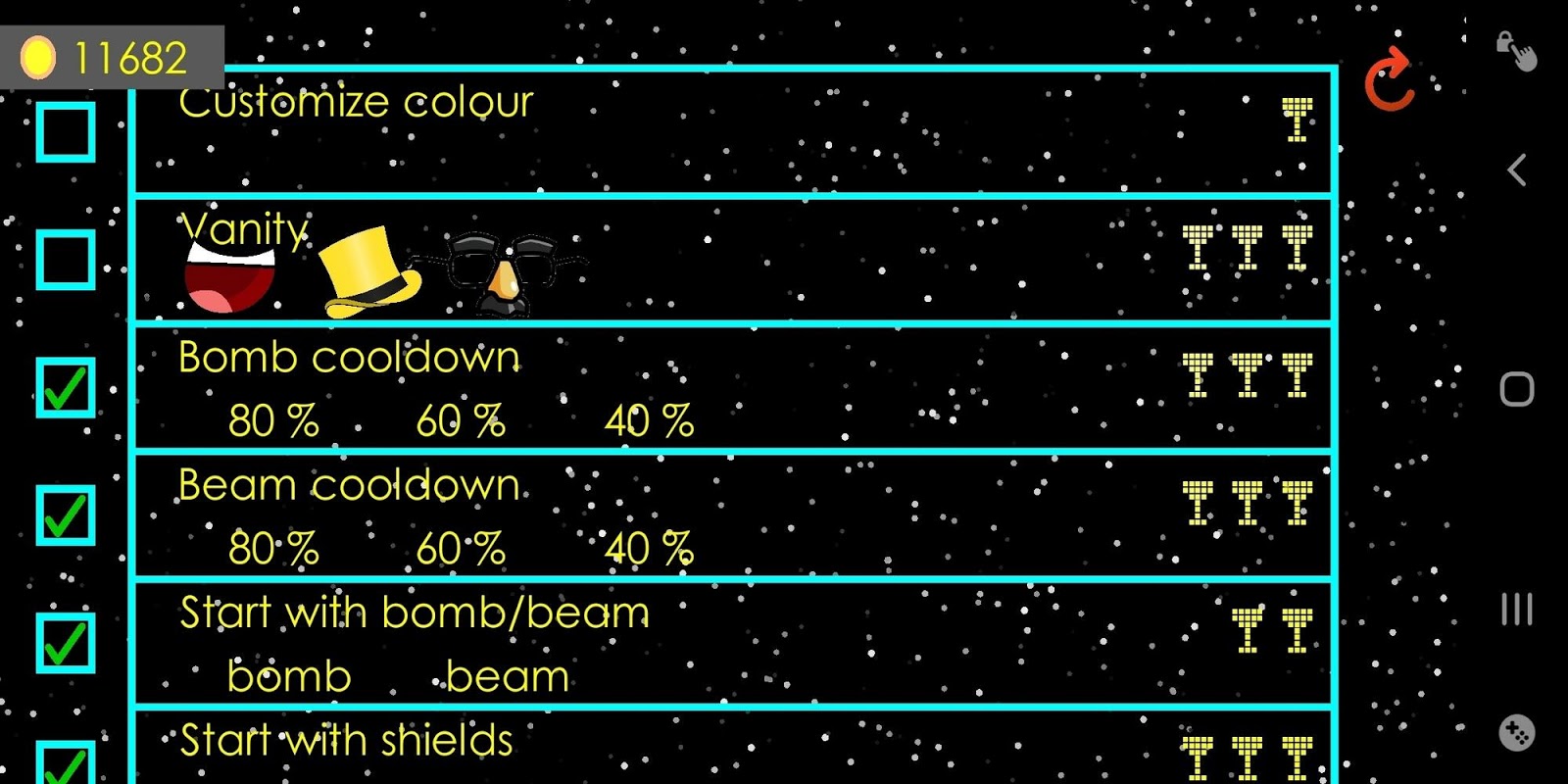 - 右侧的炸弹和激光按钮有冷却时间