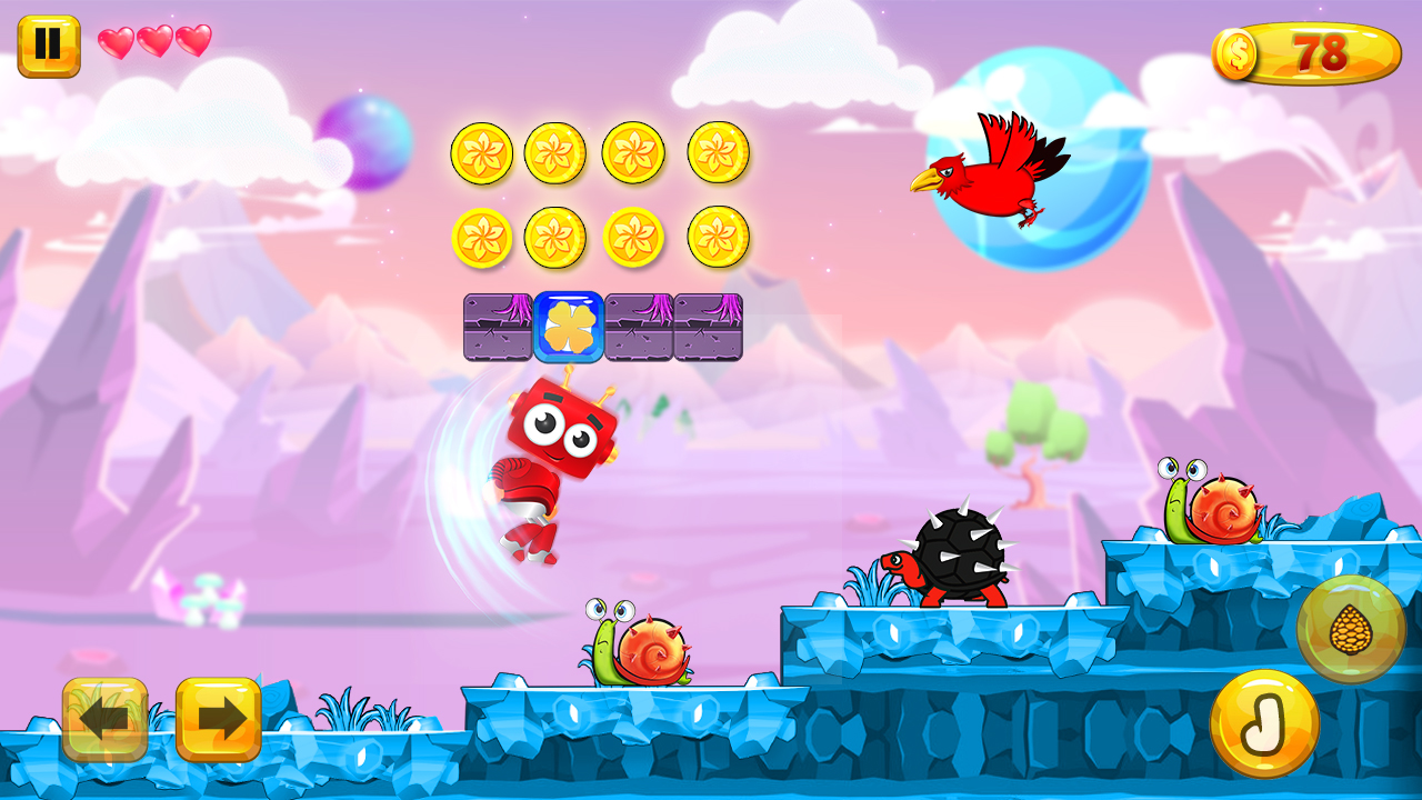 在每个级别结束时杀死邪恶的老板。享受完全互动的丛林环境。打破可破坏的砖块。射击以从悬挂的树上获取果实和力量。建议您小心穿越移动平台。跳过并找到平衡可能会很棘手。新的超级机器人正在最诡异的环境中运行以求生存。使用这些 2021 年免费离线趣味游戏让丛林冒险令人难忘。探索可破坏积木中的隐藏奖励。获得所有硬币,因为有许多现代和经典的道具。