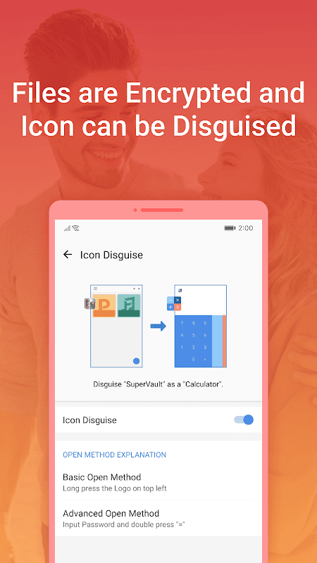 超级保险柜可以伪装其应用程序图标并保证您的隐私绝对安全,没有人知道它的存在。