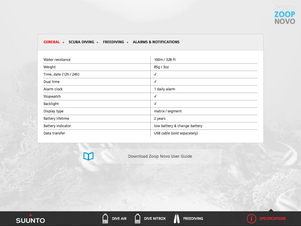 Perfect for users who want to get the most out of their Suunto computer, as well as dive schools who are teaching students the basics of diving with a computer.