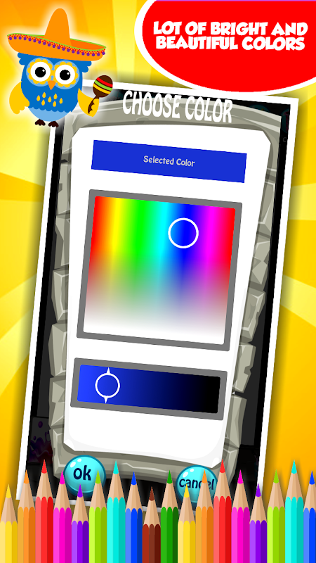 发现最有趣的方式来娱乐自己与惊人的有翼生物的草图的耸人听闻的集合。免费下载最新的甜猫头鹰着色书应用程序,并浏览将完全吸引你的壮观照片。其中一个呈现了最可爱的鸟坐在树枝上,用大圆的眼睛看着你。点击油漆桶,以令人着迷的色调装饰这幅可爱的绘画。选择仔细的羽毛,使它代表这只鸟,就像它在大自然中看起来一样。当你完成它,与所有的朋友分享它,以惊叹他们的艺术技能。他们想为自己和他们的孩子们获得惊人的甜猫头鹰着色应用程序。这个顶级游戏适用于所有年龄的人,这就是为什么它适合儿童和成人。最重要的是它玩起来容易和简单。