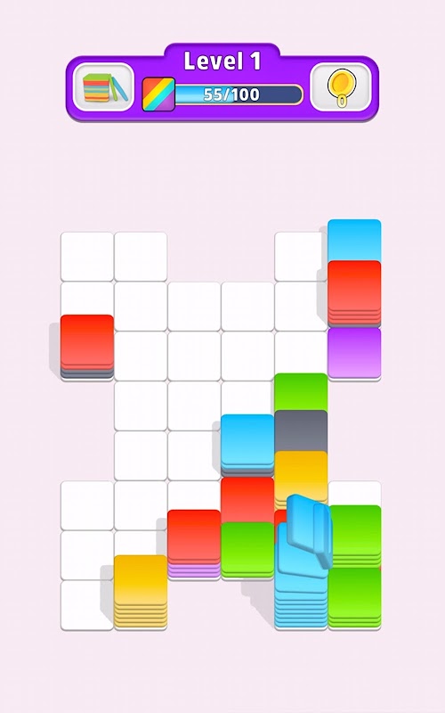 滑动(向上、向下、向左或向右)以移动图块。当相同颜色的图块与其他相同的图块重叠时,它们将堆叠。当 10 个相同颜色的图块堆叠在一起时,它们会爆炸!您必须收集目标数量的图块。