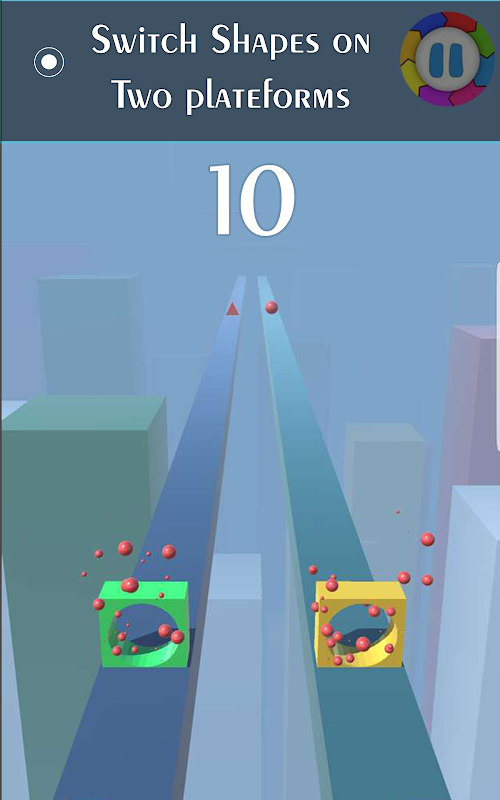 In this switch shape game, you have 3 types of shapes first sphere, triangle and rectangle and three types of obstacles to these shapes. You have to do just tap your screen to switch the shapes and find the same shape when you are going on colorful roads.