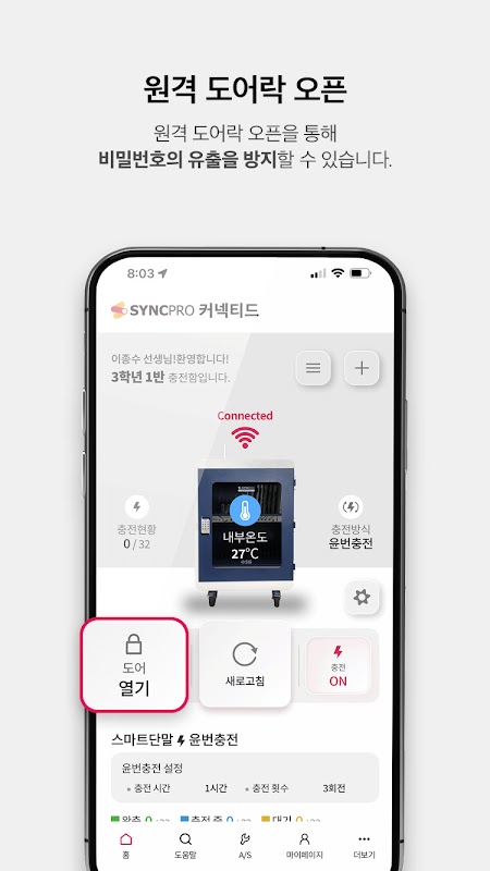 韩国首个IoT充电保管柜 Syncpro可以通过Wi-Fi无限网络进行远程监控及管控。