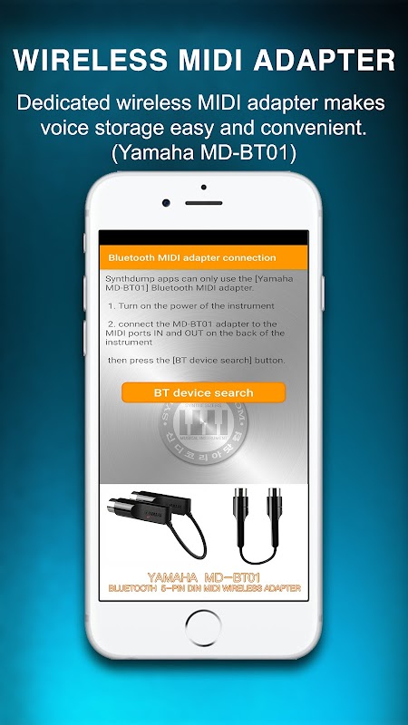 ※ SynthDump 应用程序专用的蓝牙 MIDI 适配器是 [YAMAHA MD-BT01]。