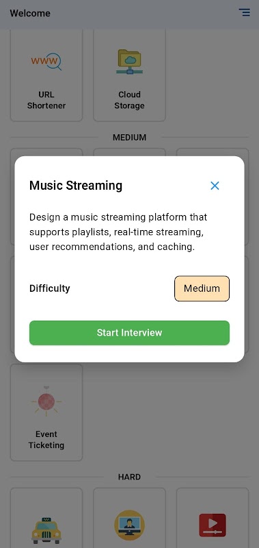 想要在系统设计面试中取得好成绩吗?该应用程序提供人工智能驱动的模拟面试体验,帮助您像专业人士一样做好准备。获取分步问题、实时反馈和详细的记分卡来跟踪您的表现!