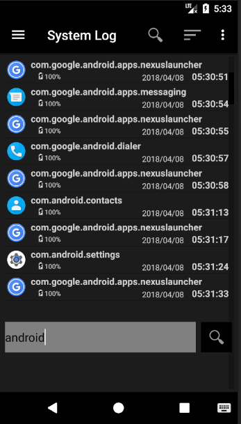 SystemLog 将有关前台应用程序的详细信息以及电池和内存 (RAM) 使用情况写入每个包/活动更改的日志中。