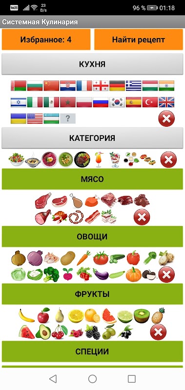 1. Все продукты и кухни - картинками, при поиске можно ничего не набирать