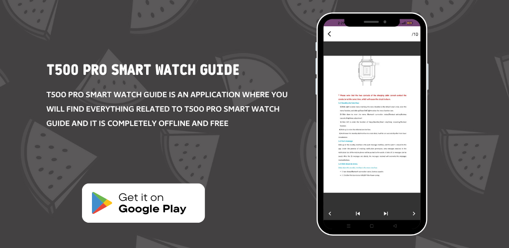 欢迎使用T500 Pro智能手表指南应用程序!此应用程序为您提供有关 T500 Pro 智能手表的丰富信息。