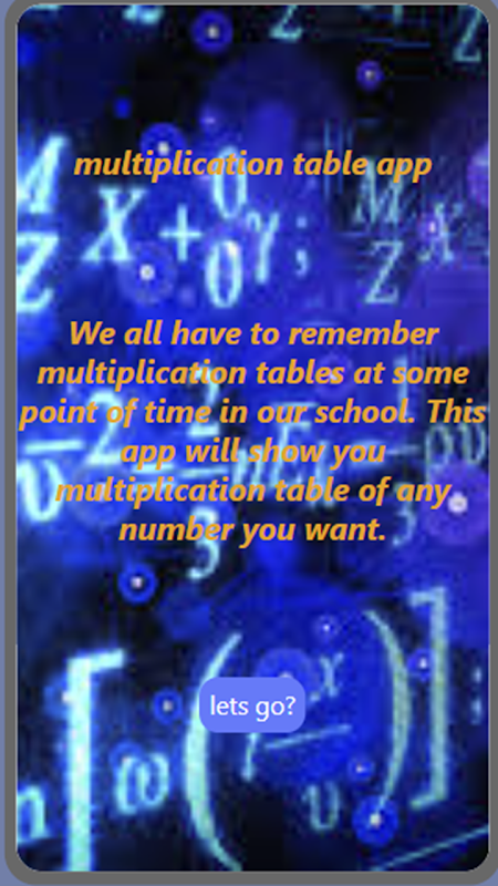 我们的应用程序将生成任意数字的表格,它将帮助学生学习。