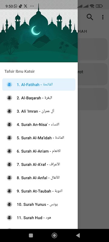Complete Ibnu Katsir Tafsir应用程序中的内容可以共享,以便用户可以轻松地与朋友分享重要内容。