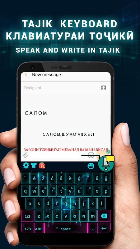 全新的塔吉克语言键盘设计有您最喜爱的,美丽而神奇的主题。您可以从多个主题中选择最佳选择。选择适合你的主题