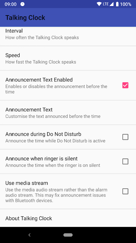 会说话的时钟在后台运行,并按您选择的间隔向您宣布时间。