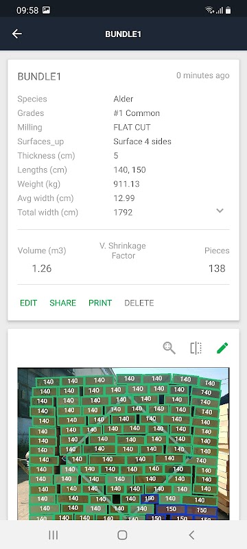 TallyExpress是一款用于测量边缘和毛边木材的移动应用程序。给捆绑包拍照并立即检查结果!该应用程序使用人工智能,自行检测木板,计算宽度,体积并输出提示报告。所有度量都可以与您的业务合作伙伴共享或发送到您的库存管理系统中。