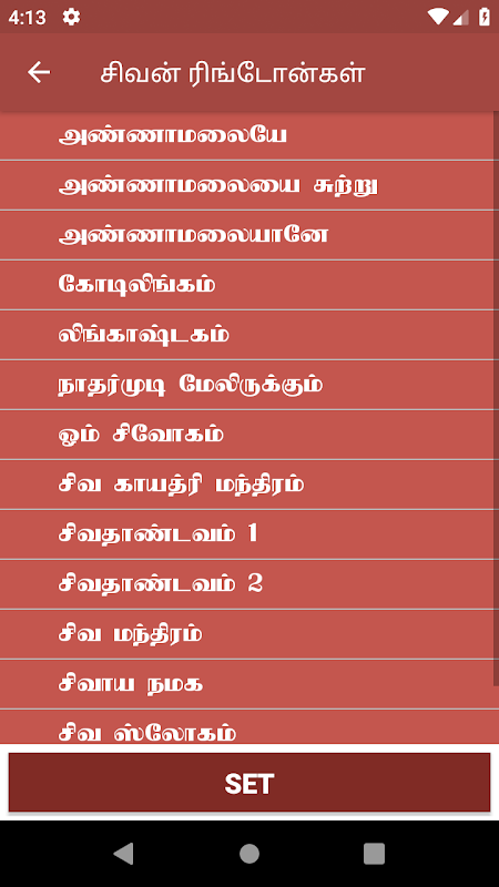 * Sivan Ringtones , Vishnu / Perumal Ringtones , Amman ringtones , Vinayakar Ringtones , Murugan Ringtones , Ayyappan ringtones , Anjaneyar Ringtones , Saibaba Ringtones , General Devotional Ringtones