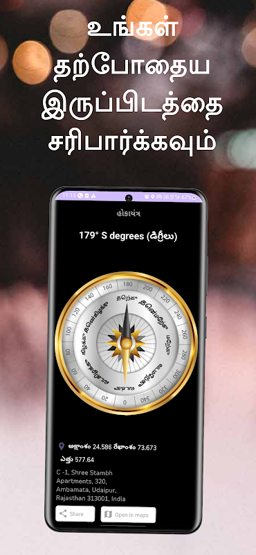 இதுடிஜிட்டல்திசைகாட்டி。 இது எந்த நேரத்திலும் இடத்திலும் திசை கண்டுபி டிக்கஉதவுகிறது。 இது மொபைலில் உள்ள இன்பில்ட் காந்த உணரியால் செ யல்படுகிறது。
