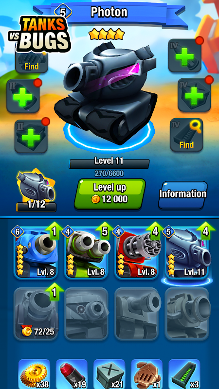 丰富的组合技供您使用:炸弹、冰冻炮弹、等离子炮等等。选择最有效的组合,以最高效的效率摧毁战场上的目标。