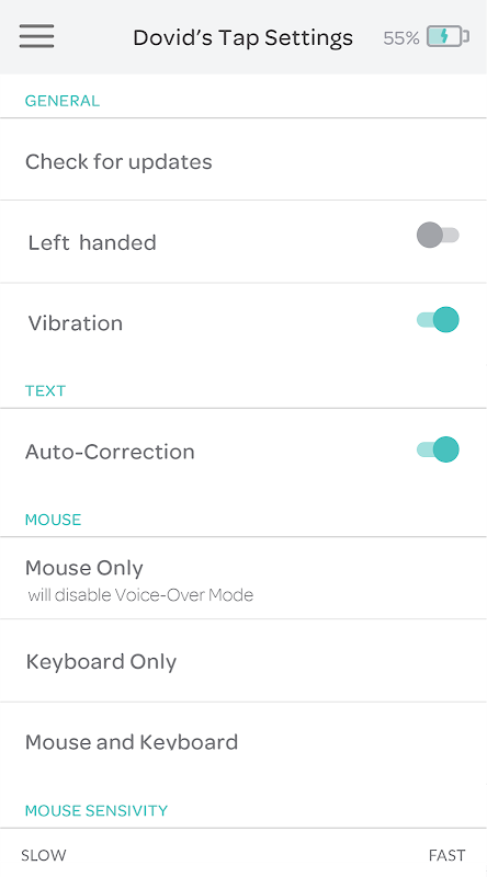 它可以让你更新你的TAP和自定义设置,如左/右右手使用,鼠标和滚动速度和语言选择。
