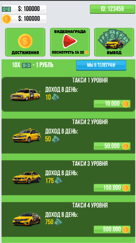 完成几个任务后,您将获得奖励,您可以购买一辆能为您带来真钱的汽车! 10 个硬币等于 1 卢布。