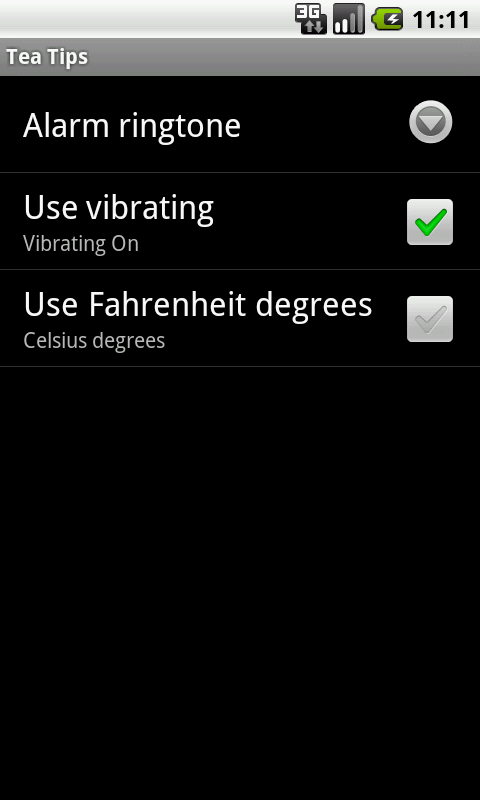 Widget with countdown timer for brewing tea.