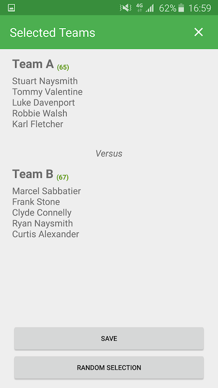 -选择任意数量的球员来产生团队。