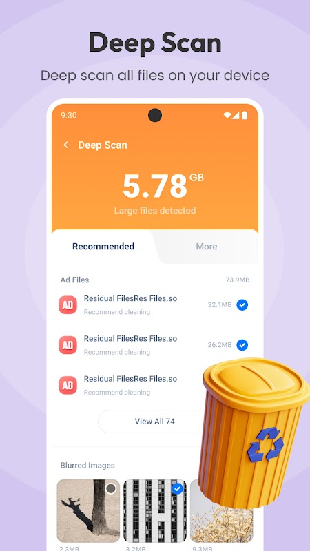 ★ 垃圾扫描 - 扫描并识别设备上的各类垃圾文件,如临时文件、应用程序缓存、广告垃圾等,有效管理设备存储空间。