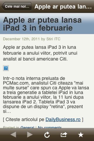Aplicatia contine informatii din cele mai importante site-uri de stiri si informatii din Romania.
