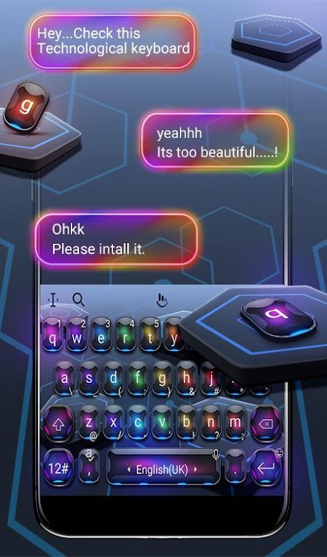 😆Technological keyboard theme is a wonderful theme that will personalize your smart phone keyboard. Apply this fancy theme and enjoy the better typing experience of Technological style. Technological keyboard theme is designed for all Technological lovers to give you a better typing experience! Now it is available for FREE.
