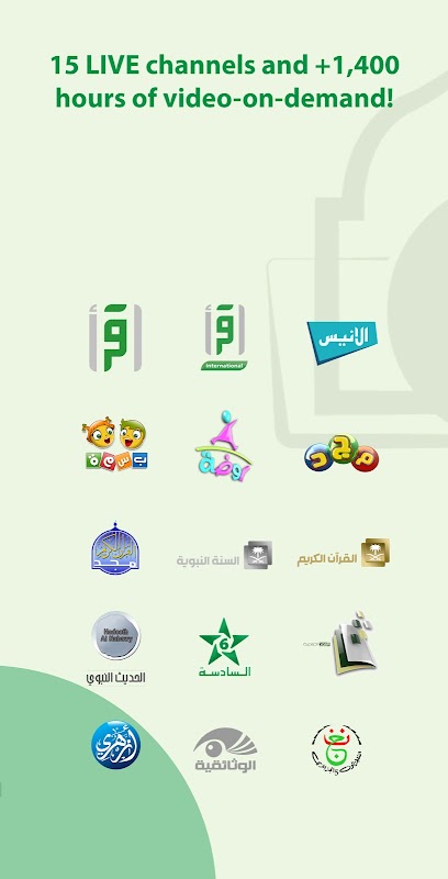 15个直播电视频道和+1,400小时的伊斯兰视频点播内容