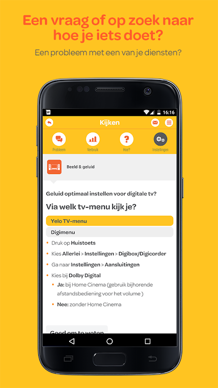 · Bellen, surfen, kijken of algemeen? Jij kiest in een eenvoudig menu uit een aantal trefwoorden en geeft zo aan waarover je vraag gaat