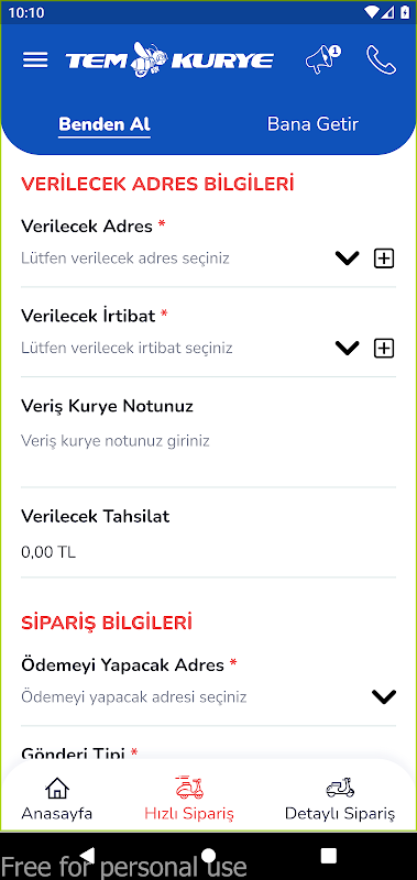 您可以通过从本部分选择/添加地址到收货和交付信息,在您的地址以外的两个不同地址之间进行快递运输。从交货时间选择运动类型