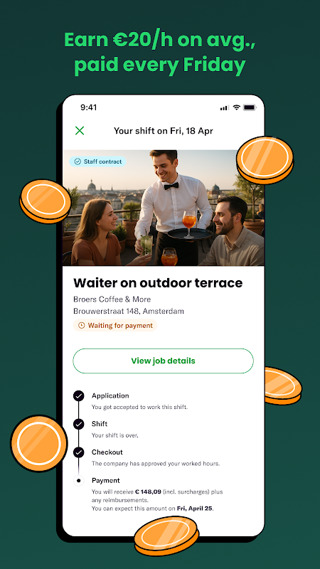 - 根据临时雇佣协议轮班工作(如果客户延迟取消,根据 48 小时默认取消政策,您仍将获得 100% 的付款)