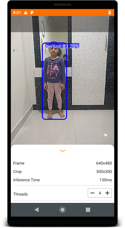 This is a camera app that continuously detects the objects (bounding boxes and classes) in the frames seen by your device's back camera, using a quantized MobileNet SSD model trained on the COCO dataset. These instructions walk you through the building and running the demo on an Android device.