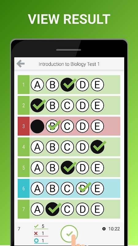 result在结果屏幕上,您可以查看测试中正确,不正确和空白数字的总数,还可以学习对错误或为空的问题的正确答案。您还可以看到您已完成测试多长时间。