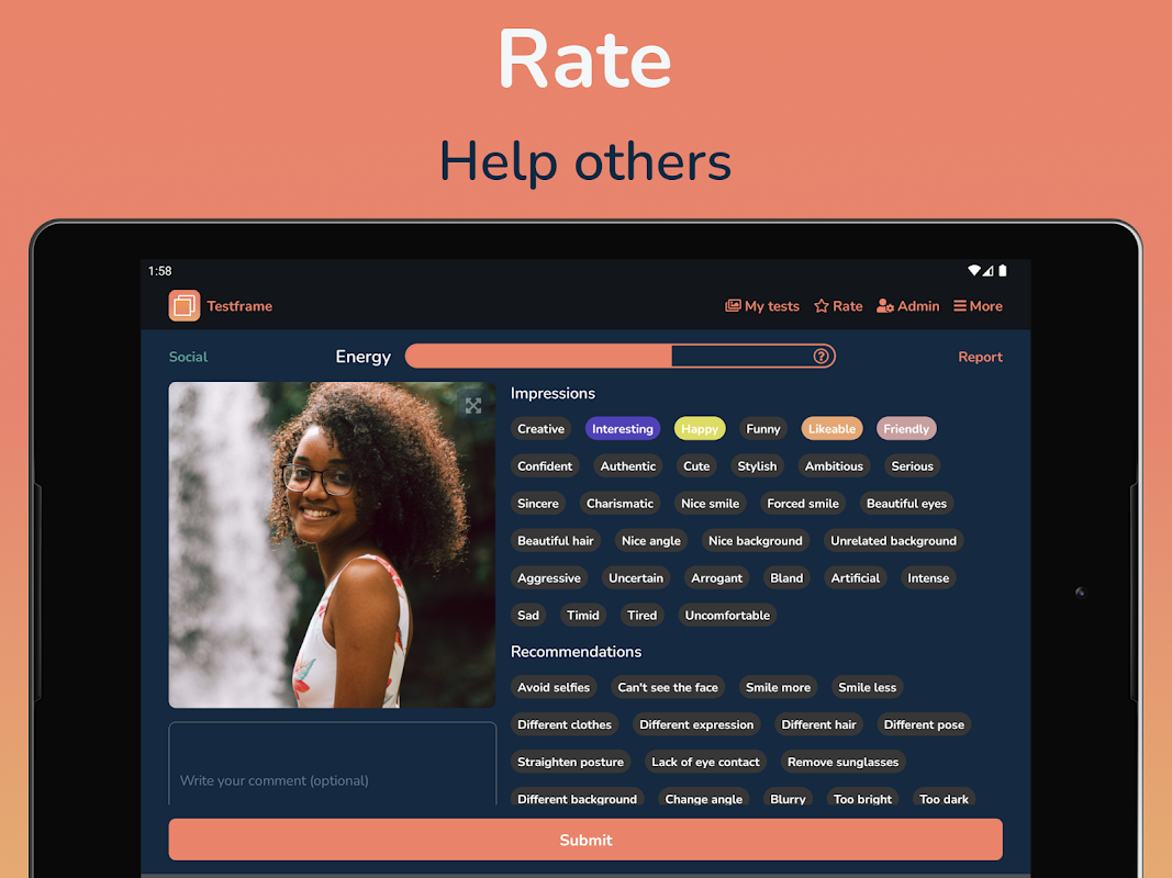 为约会、社交和商务评价和测试照片!