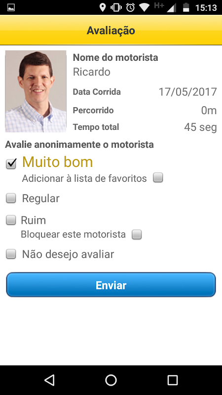 O valor cobrado pelo serviço será informado previamente ao passageiro.