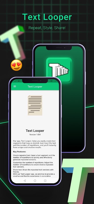 释放您的创造力,使用文本循环器,这是文本爱好者必备的应用! 🚀 轻松重复您喜欢的文本内容,定制循环次数以适应您的氛围。无论您想要微妙的回声还是强调的重复,文本循环器都可以满足您的需求!