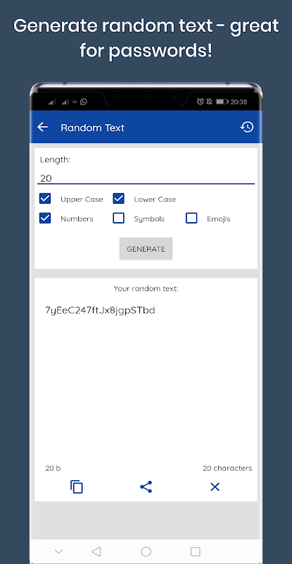该应用程序包括文本转发器,随机文本生成器,单词/字符去除器,炫酷文本样式和莫尔斯电码的模式。多种模式让您尽兴!
